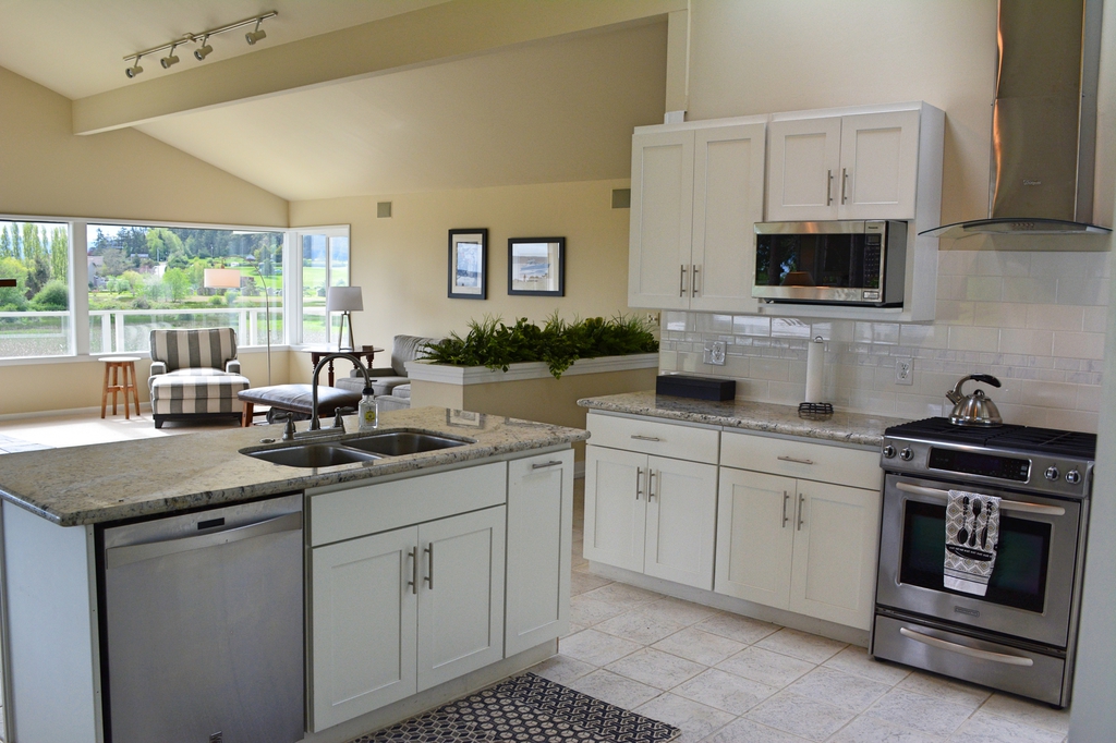 An open floor plan, large decks and comfortable furnishings encourage relaxation and family fun. Cooking is a breeze in the gourmet kitchen with island and seating area.