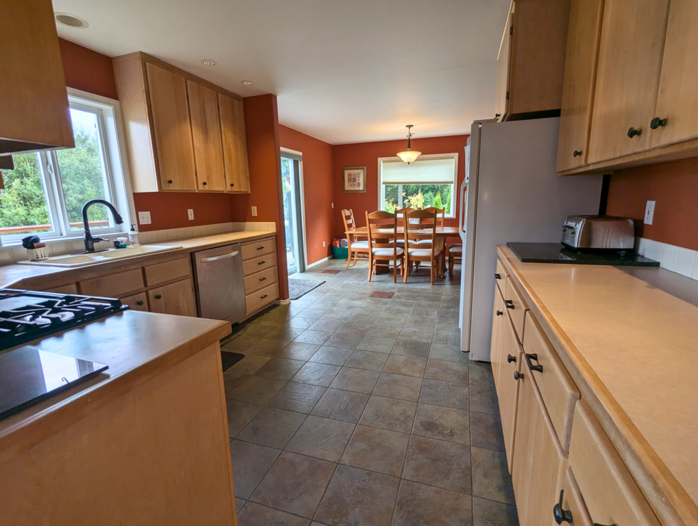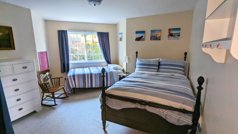 Our home is spacious and very well suited for family or friends to gather. There is a fenced area just off of the deck so you are welcome to bring you dog along too. All three bedrooms are upstairs: a room with a queen bed that overlooks the lake, a large 'kids' room with a full bed and a twin bed and a large primary suite with a king bed and private bathroom overlooking the lake. We have a TV in the primary bedroom.